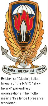 Gladio var en omfattande operation som startades av brittisk och amerikansk underrättelsetjänst 1958 och pågick ända fram till mitten av 70-talet. Operationen bestod av hemliga gerillatrupper som skapades över hela Europa och efter kalla krigets slut skulle agera som beskyddare mot kommunistiskt inflytande. Kärnan i planen var olika former av terrorism mot den civila befolkningen, speciellt i Italien. Med hjälp av olika högerextrema organisationer genomfördes en våg av attacker där hundratals oskyldiga människor dog varpå man sedan förde över skulden på kommunistiska terrorister. En av de större terrorattackerna var på tågstationen i Bologna där 85 personer dog och mer än 200 skadades. Denna operation är idag mycket väldokumenterad.