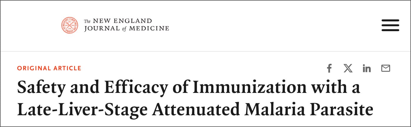 ”Vi genomförde en dubbelblind, kontrollerad klinisk prövning för att utvärdera säkerheten, biverkningsprofilen och effektiviteten av immunisering, via myggbett, med en andra generations genetiskt försvagad parasit (GA2) — en mei2 enkel knockout P. falciparum NF54-parasit (sporozoitform) med förlängd utveckling i leverstadiet,” uppgav forskarna.