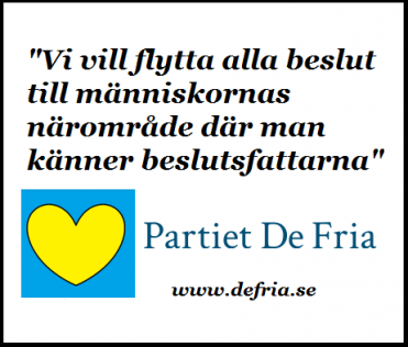 Partiet De Fria är ett nytänkande parti som kan ändra Sverige i grundvalarna. Partiet De Fria är ett parti för alla som älskar frihet, fred och rättvisa. Staten ska tjäna medborgarna – Inte tvärt om! Det verkar alla partierna ha glömt eller förträngt.